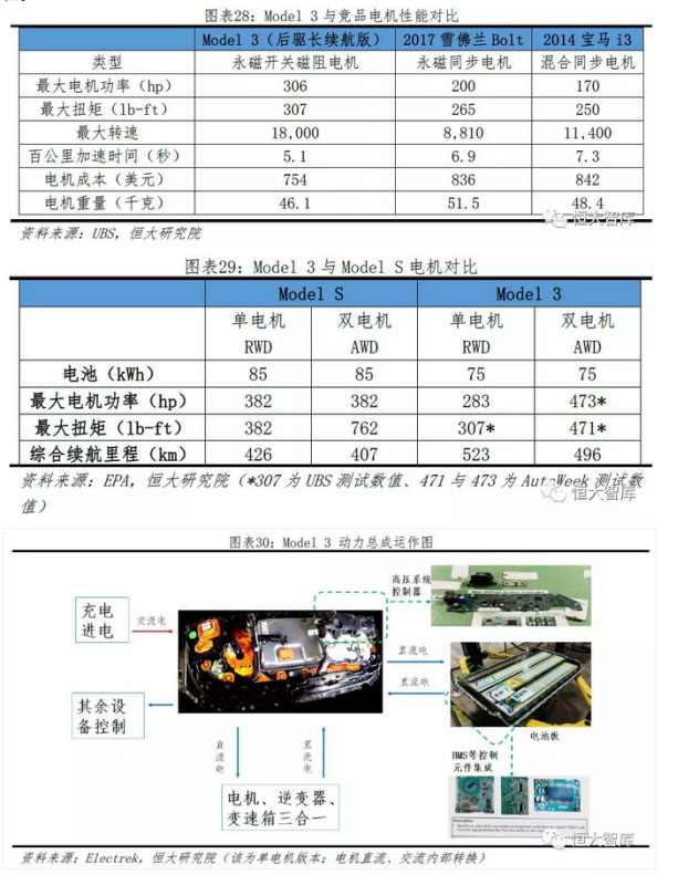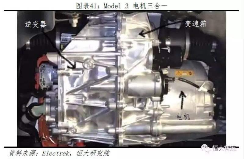 動力總成集成優(yōu)化內(nèi)部結(jié)構(gòu),有利縮減車型降低成本,形成價格競爭力。特斯拉一直保持包括電池包、BMS、冷卻系統(tǒng)、電機(jī)等動力總成高度集成的特點(diǎn)。例如,無論是感應(yīng)電機(jī)還是永磁開關(guān)磁阻電機(jī),基本結(jié)構(gòu)都為變速箱、逆變器和電機(jī)三體合一的結(jié)構(gòu)。對比來看,每次推出新款車型,特斯拉都盡可能在原基礎(chǔ)上集成升級。對比Model S/X,Model 3的車體減小約20%、價格降低約50%,為保證整車性能,特斯拉加入更多系統(tǒng)芯片來控制部件協(xié)調(diào)運(yùn)作,并且將例如Model3的冷水機(jī)、電動閥、液冷罐等零部件集成為冷卻液儲閥罐,即Super Bottle,通過算法調(diào)節(jié)內(nèi)部線路串并聯(lián)結(jié)構(gòu),減少例如PTC加熱器等零部件。