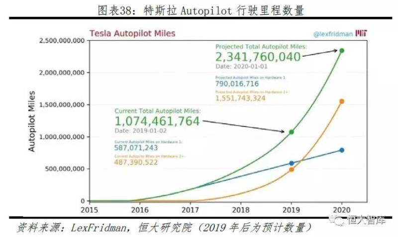 二、Autopilot擁有數(shù)據(jù)優(yōu)勢。作為最早搭載自動輔助駕駛系統(tǒng)的電動車品牌,同時擁有全球規(guī)模最大的輔助駕駛車隊,截止2019年1月,特斯拉Autopilot行駛里程超過17.3億公里,遠(yuǎn)超其他競爭對手,并且車隊規(guī)模保守估計以每年約40萬輛遞增(Model S/X 10萬輛/年+Model 3 30萬輛/年)。作為對比,根據(jù)加州車輛管理局《2018年自動駕駛脫離報告》的數(shù)據(jù),激光雷達(dá)路線的領(lǐng)頭羊Waymo在2017年12月至2018年11月期間的路測車隊規(guī)模為110輛,路測里程數(shù)約200萬公里。