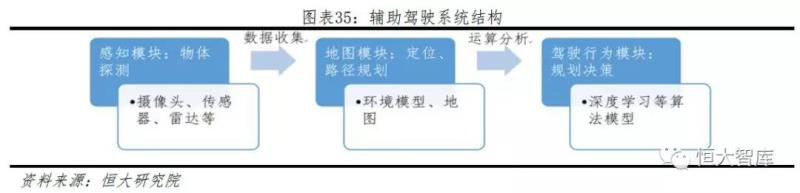 汽車輔助駕駛系統(tǒng)由軟硬件組合構(gòu)成,從結(jié)構(gòu)框架來看,主要分為感知模塊、地圖模塊、駕駛行為決策模塊。從流程來看,感知模塊通過雷達(dá)、傳感器、攝像頭等硬件,收集周圍環(huán)境探測到的物體數(shù)據(jù),地圖模塊提供定位和全局路徑規(guī)劃,數(shù)據(jù)共同傳輸?shù)今{駛行為模塊,為駕駛方案提供信息支持,最后決策模塊控制車體轉(zhuǎn)向、加速等實(shí)施行為。