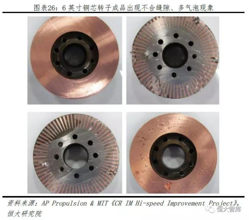 熔點(diǎn)高、大尺寸制造難度等制約銅芯電機(jī)發(fā)展。對比鋁(熔點(diǎn)660.3℃),銅(熔點(diǎn)1083.4℃)過高熔點(diǎn)增加制造難度,AC Propulsion與MIT的一項實(shí)驗(yàn)表明,一旦電機(jī)體積過大,采用銅材料的電機(jī)成品極易造成氣泡過多、難以鑲嵌等問題。
