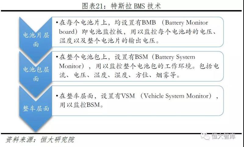 三、高精度的電池管理系統(tǒng)保障電池安全、提高循環(huán)壽命。電池管理系統(tǒng)(Battery Management System, BMS)是特斯拉最核心的幾項技術(shù)之一。不同于鉛酸電池,鋰電池由于具有非線性的充放電曲線,造成不論是電芯或是電池包層面,監(jiān)測、預(yù)估和管理的難度都大大增加。如果管理不當(dāng),個別電芯的過度充放電將引起永久性的電池?fù)p傷,造成整個電池系統(tǒng)電壓、溫度不穩(wěn)定,嚴(yán)重的將導(dǎo)致熱失控事件。因此電池管理系統(tǒng)對電池容量、循環(huán)壽命和安全性均起著至關(guān)重要的作用。自從Model S開始,特斯拉就采用了NCA為正極材料的電芯,與業(yè)界更加主流的高鎳NCM材料相比,NCA雖然能量密度更高,但是循環(huán)壽命更短,穩(wěn)定性也更差,因此對BMS提出了更高的要求。