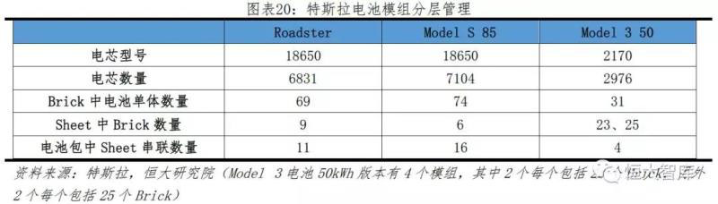 二、串并聯(lián)組合、分層管理模式優(yōu)化模組結(jié)構(gòu),提高電池充放電能力。特斯拉電池采用特有的串并聯(lián)方式,按照“單體電池-brick-sheet-pack”順序進(jìn)行分層管理。例如,特斯拉將Roadster電池系統(tǒng)的6831節(jié)電池分成不同的子單元(4個模組中2個為23Brick/module,另外2個為25Brick/module,即2*23*31+2*25*31)進(jìn)行并聯(lián)和串聯(lián),多組串聯(lián)和平板的設(shè)計,極大增加電池鋪設(shè)數(shù)量和使用效率,從而提高整車動力性能和續(xù)航里程。