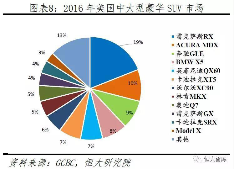 2015年第三季度,搭載鷹翼門豪華SUV Model X正式交付。相較Model S,Model X在性能上并沒有太多的創(chuàng)新,兩者的用戶定位與價格也相仿,均屬“Master Plan”第二階段計劃。Model X主要為滿足需求更大的豪華SUV市場,并豐富產(chǎn)品線。較ModelS銷量呈穩(wěn)定趨勢,ModelX依舊保持增長,目前全球總銷量超12萬輛,在美國大中型豪華SUV市場占有率與奔馳GLE、寶馬X5等競品接近。