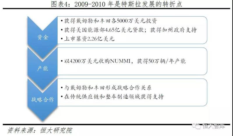 奔馳和豐田的戰(zhàn)略投資使特斯拉獲得資金與品牌雙重背書。2009年1月底特律車展之后,戴姆勒向特斯拉訂購了4000顆電池組用于奔馳A-Class車輛測試,并且以5000萬美元取得了特斯拉10%的股份,形成了合作伙伴關(guān)系。2010年5月特斯拉獲得豐田5000萬美元投資,取得3%股份。與兩家傳統(tǒng)車企巨頭的戰(zhàn)略合作不僅解決了特斯拉資金方面的燃眉之急,更讓特斯拉快速學(xué)習(xí)到生產(chǎn)、管理經(jīng)驗(yàn)和模式的know-how。此外,特斯拉還以4200萬美元低價收購原豐田與通用合資、年產(chǎn)能50萬輛的工廠NUMMI,為大規(guī)模量產(chǎn)打下基礎(chǔ)。
