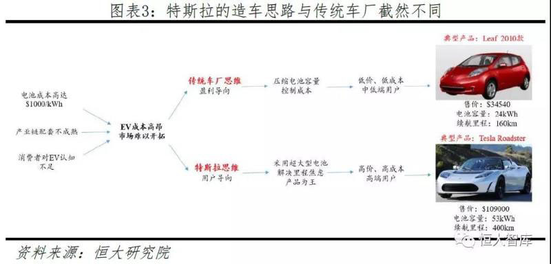 特斯拉以高端小眾電動跑車切入汽車行業(yè)。汽車是典型的技術(shù)密集與資本密集型行業(yè),也是初創(chuàng)企業(yè)存活幾率最低的行業(yè)之一。無論生產(chǎn)制造工藝、供應(yīng)鏈管理或是企業(yè)品牌,特斯拉初期都無法比擬有著幾十年甚至上百年積淀的傳統(tǒng)車企。況且在當(dāng)時高達(dá)$1000/KWh的電池成本與產(chǎn)業(yè)鏈配套尚不成熟的客觀環(huán)境下,不論造一輛跑車還是經(jīng)濟(jì)實(shí)用型轎車的成本都相當(dāng)昂貴。特斯拉的思路非常清楚:既然第一款車注定虧錢,不如先針對高收入群體推出高端電動跑車,高舉高打,徹底顛覆人們對于電動車?yán)m(xù)航里程短、性能差的認(rèn)知。