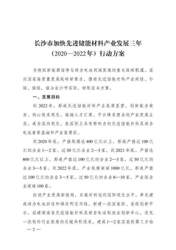 中國(guó)儲(chǔ)能網(wǎng)訊:長(zhǎng)沙市人民政府辦公廳印發(fā)《長(zhǎng)沙市加快先進(jìn)儲(chǔ)能材料產(chǎn)業(yè)發(fā)展三年(2020-2022年)行動(dòng)方案》,提出到2022年,形成先進(jìn)儲(chǔ)能材料產(chǎn)業(yè)集聚顯著、創(chuàng)新能力突出、核心技術(shù)領(lǐng)先、高端人才匯聚、平臺(tái)體系健全的產(chǎn)業(yè)發(fā)展生態(tài).成為國(guó)內(nèi)領(lǐng)先、在國(guó)際上具有影響力的先進(jìn)儲(chǔ)能材料及動(dòng)力電池重要基地和產(chǎn)業(yè)集聚區(qū)。