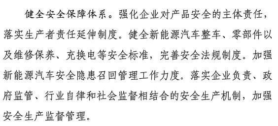 《征求意見稿》提出,強(qiáng)化企業(yè)對產(chǎn)品安全的主體責(zé)任,落實(shí)生產(chǎn)者責(zé)任延伸制度。健全新能源汽車整車、零部件以及維修保養(yǎng)、充換電等安全標(biāo)準(zhǔn),完善安全法規(guī)制度。加強(qiáng)新能源汽車安全隱患召回管理工作力度。落實(shí)企業(yè)負(fù)責(zé)、政府監(jiān)管、行業(yè)自律和社會監(jiān)督相結(jié)合的安全生產(chǎn)機(jī)制,加強(qiáng)安全生產(chǎn)監(jiān)督管理。