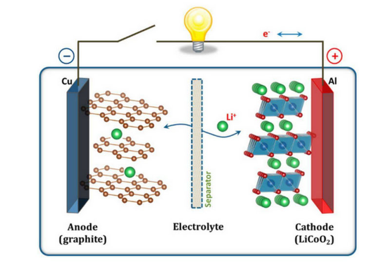 鋰離子電池工作原理圖 (圖片來源:John B. Goodenough,2013)