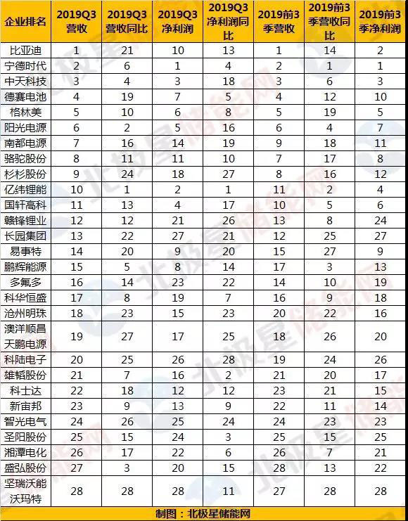 寧德時(shí)代和中天科技各項(xiàng)排名表現(xiàn)雖比較均衡,都在前十名之列。但是寧德時(shí)代第三季度的營收增勢已不如其半年報(bào)中表現(xiàn)亮眼。類似的德賽電池也未能保持半年報(bào)的營收優(yōu)勢。