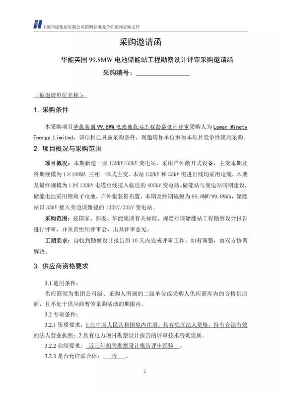 中國儲(chǔ)能網(wǎng)訊:9月3日,華能集團(tuán)發(fā)布華能英國99.8MW電池儲(chǔ)能站工程勘察設(shè)計(jì)評審競爭性談判公告。這是時(shí)隔近半年后,華能再度發(fā)布該項(xiàng)目的招標(biāo)信息。