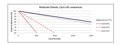 固定儲能系統(tǒng)中鉛酸電池與鋰離子電池的循環(huán)壽命比較