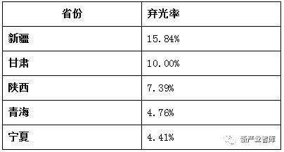 2018年中國(guó)西北各省棄光率統(tǒng)計(jì)
