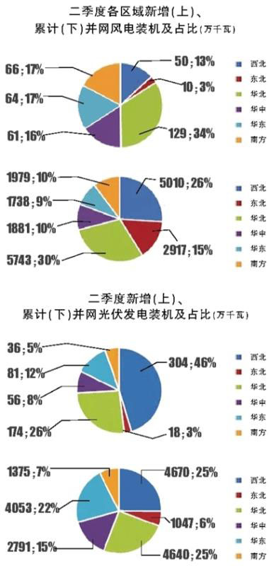 華中、華東和南方地區(qū)消納情況整體較好。二季度,中東部和南方地區(qū)棄風(fēng)1.4億千瓦時(shí),棄光2.2億千瓦時(shí)。湖南二季度進(jìn)入汛期后出現(xiàn)一定棄電,西藏受電網(wǎng)送出限制造成棄光率較高但總量不大,貴州和云南受局部網(wǎng)架影響出現(xiàn)了微量的棄風(fēng)棄光,其余地區(qū)無(wú)新能源消納問(wèn)題。