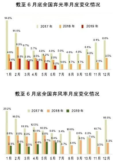 新能源棄電量和棄電率“雙降”,消納形勢(shì)整體向好。1—6月,全國(guó)棄風(fēng)電量104.6億千瓦時(shí),同比大幅減少77.2億千瓦時(shí),棄風(fēng)率4.7%,同比下降4個(gè)百分點(diǎn);棄光電量26.1億千瓦時(shí),同比減少4.3億千瓦時(shí),棄光率2.4%,同比下降1.2個(gè)百分點(diǎn),新能源消納情況持續(xù)好轉(zhuǎn)。二季度,受風(fēng)光資源條件影響,全國(guó)風(fēng)電、光伏平均利用小時(shí)比一季度分別提高21、96小時(shí),比去年同期分別提高27、18小時(shí)。