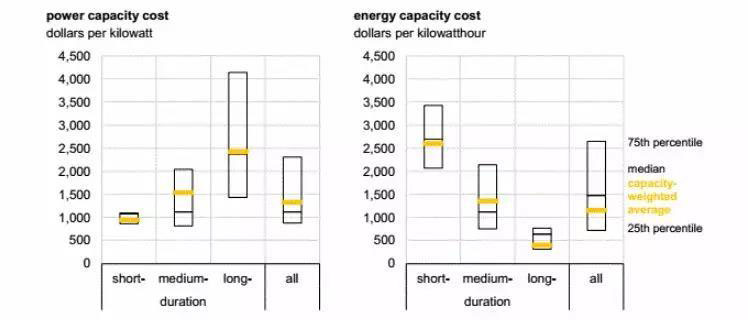 表1. 按持續(xù)時間劃分的大型蓄電池組資本成本估算的樣本特征