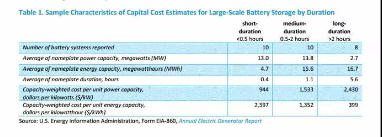 從在電力容量和能源容量方面來看,由2013年至2016年美國安裝的大型電池儲能系統(tǒng)分析,如表1所示,短期電池儲能系統(tǒng)的平均功率為13mw,中期電池儲能系統(tǒng)的功率為13.8mw,相比而言,長期電池儲能系統(tǒng)的平均容量要小得多,為2.7兆瓦。