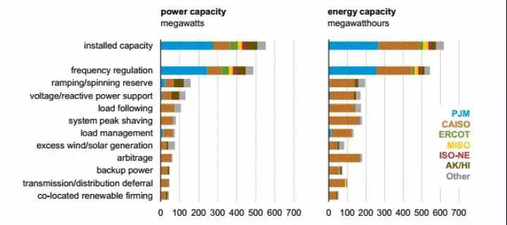 圖10. 美國大型電池存儲服務(wù)的應(yīng)用(2016年)