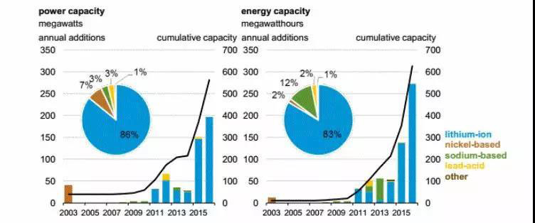圖9. 美國大型化學(xué)電池容量(2003—2016)