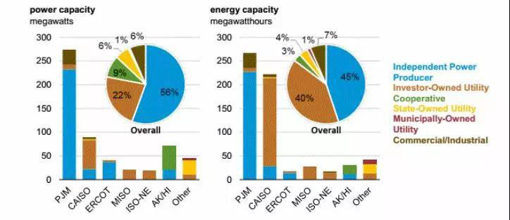 截至2016年底,美國大型電池儲能容量的一半以上是由獨(dú)立發(fā)電商(IPP)所有。
