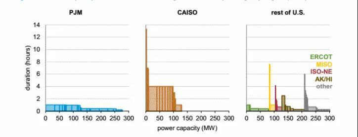 PJM中的裝置傾向于以功率為導(dǎo)向,具有更大的容量和更短的持續(xù)時間,以滿足頻率調(diào)節(jié)應(yīng)用。