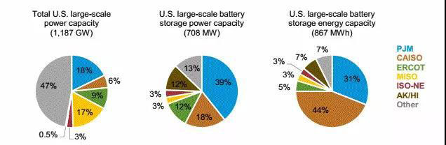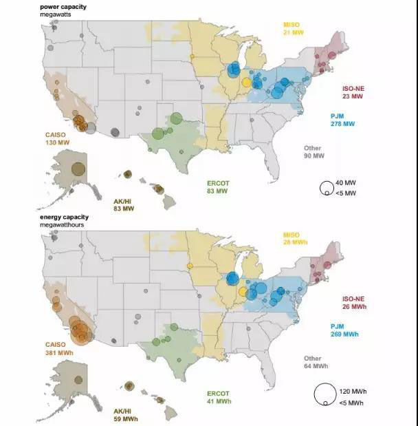 圖2. 按地區(qū)劃分的美國大型電池儲能裝置(2017年)