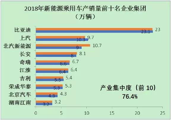 (圖1 2018年新能源乘用車前十名企業(yè)集團的產(chǎn)銷量情況)