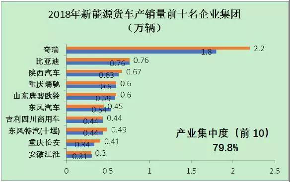 (圖3 2018年新能源貨車前十名企業(yè)集團的產(chǎn)銷量情況)