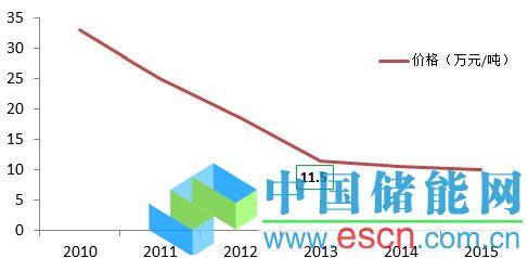 盡管天賜材料實(shí)現(xiàn)了六氟磷酸鋰的自給自足,但隨著國內(nèi)企業(yè)在六氟磷酸鋰技術(shù)上的不斷突破,國產(chǎn)化率逐漸的提高,其價(jià)格也在逐漸的下滑,預(yù)計(jì)2013年價(jià)格11.5萬元/噸左右,較2011年下降了65.2%。