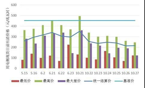 圖2 南方(以廣東起步)試點結(jié)算試運行用電側(cè)現(xiàn)貨日前出清價格