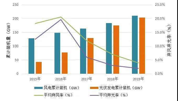 圖1 2015-2019年風、光累計裝機量及棄風、棄光率