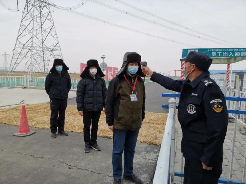 張北柔直工程張北換流站組織對(duì)入場(chǎng)工作人員進(jìn)行體溫檢測(cè)。林宇龍 攝