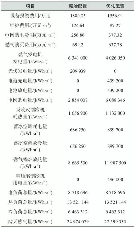 在建立起CloudIEPS數(shù)字孿生模型后,即可調(diào)用集成優(yōu)化模塊中的優(yōu)化算法內(nèi)核來(lái)實(shí)現(xiàn)案例系統(tǒng)的優(yōu)化設(shè)計(jì)。具體結(jié)果見(jiàn)表1。